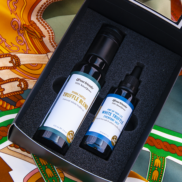Esta excursión se convirtió en el punto de partida del viaje de Lina y Johan. "Usar solo ingredientes naturales y trufas reales como parte de estos ingredientes, [es] algo muy complicado de lograr porque las trufas son muy volátiles y se deterioran rápidamente." Afortunadamente, ambos ya estaban activos en el sector de tecnología alimentaria, y un amigo suyo había desarrollado una técnica para crear un excelente sabor a trufa, con trufas frescas incluidas en la lista de ingredientes. Además de ofrecer un producto genuino con respeto a la artesanía y las tradiciones, la apariencia y sensación del empaque también desempeñó un papel clave en el desarrollo de los productos. "La presentación es extremadamente elegante, y el bono de estos [envases Miron] es que están hechos con un vidrio protector excepcional que garantiza la longevidad del contenido. ¡Eso realmente completa el paquete!" Todo lo anterior contribuye a ofrecerte un sabor lo más cercano posible a los productos auténticos sin utilizar aromas artificiales.