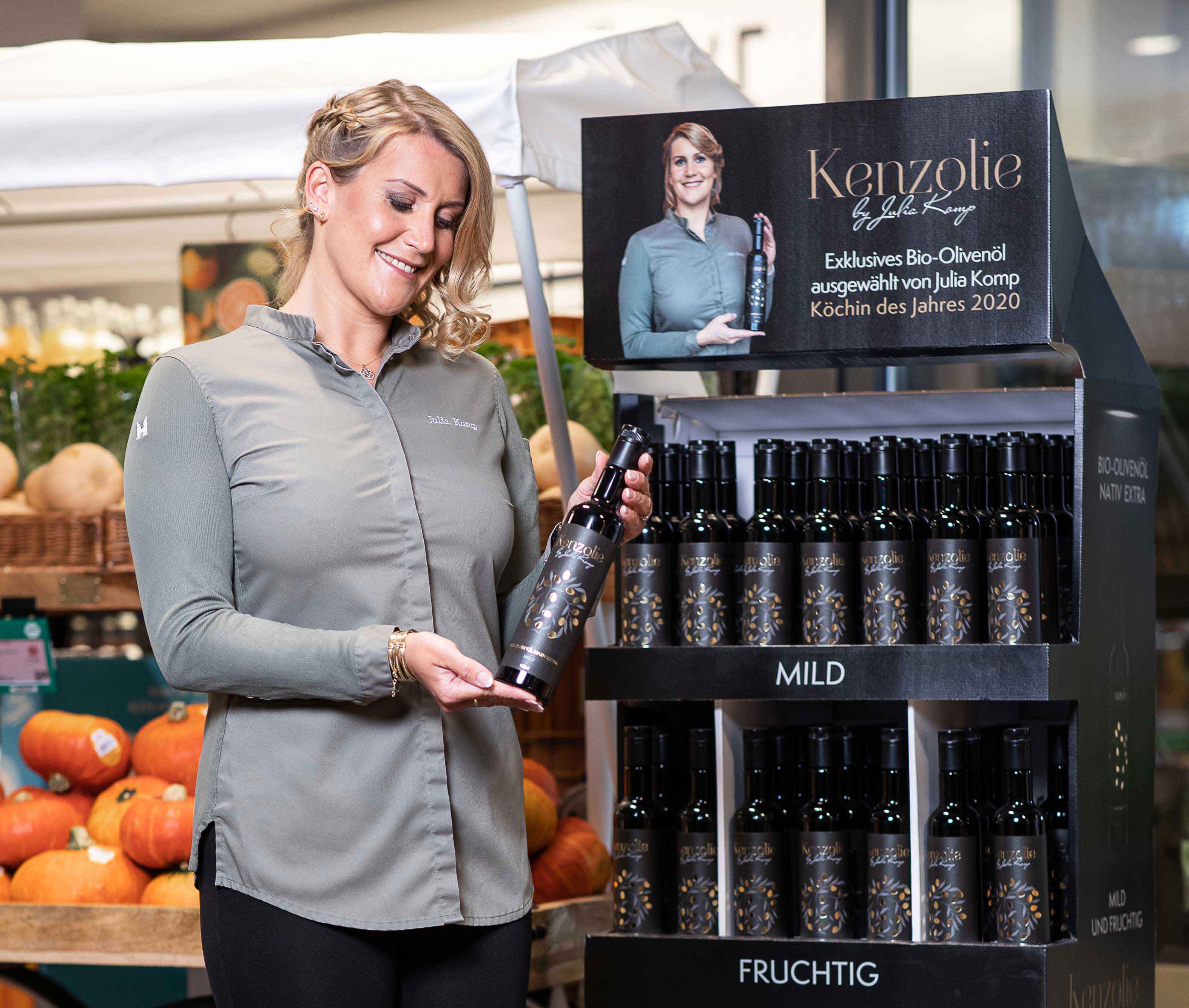 La nourriture a toujours occupé une place spéciale dans la vie de Julia Komp, qui a été nommée plus jeune cheffe étoilée Michelin d'Allemagne en 2016 et cheffe de l'année en 2020. Dès son plus jeune âge, elle a passé de nombreux étés en Tunisie, et l'un des souvenirs les plus marquants qu'elle en garde est que "la nourriture et surtout l'huile d'olive étaient incroyables! Les habitants allaient même voir leur agriculteur local pour acheter des lots fraîchement produits." Cette expérience, combinée au fait qu'il est difficile de trouver en Allemagne une huile de la même qualité, a poussé Julia à commencer à sourcer ses propres produits. "J'ai relevé le défi de trouver la meilleure huile d'olive en Tunisie et de l'importer en Allemagne. Finalement, j'ai trouvé une entreprise familiale produisant une huile biologique au goût fantastique et de qualité excellente. Cela est devenu mon huile 'Kenzolie', que je vends maintenant en ligne et dans certains supermarchés."
